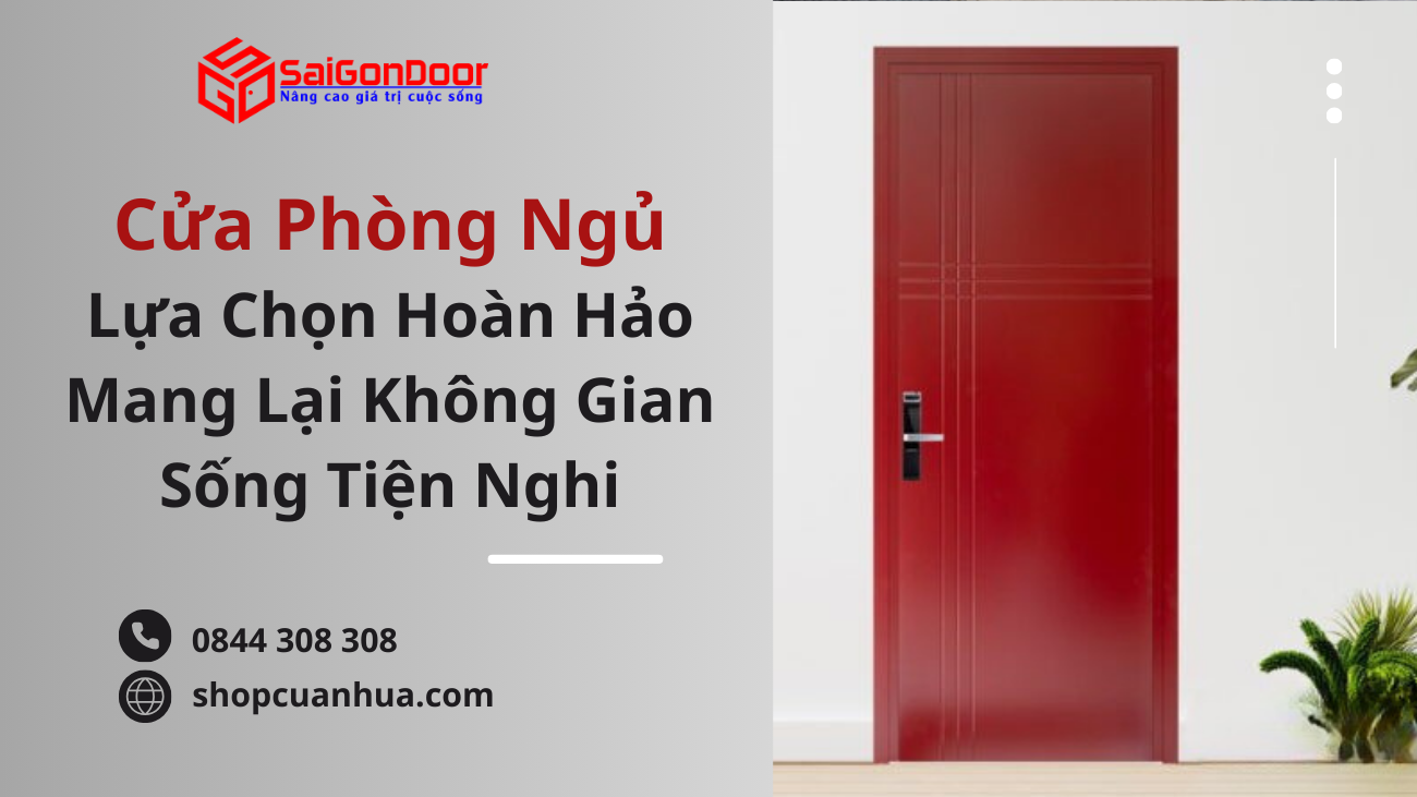 Để sở hữu những cửa phòng ngủ đẹp và bền bỉ, bạn nên chọn đơn vị cung cấp uy tín. SaiGonDoor là một gợi ý đáng tin cậy với nhiều năm kinh nghiệm trong lĩnh vực sản xuất và phân phối cửa nội thất. SaiGonDoor cung cấp đa dạng mẫu cửa gỗ phòng ngủ và cửa nhựa composite chất lượng cao, đáp ứng nhiều phong cách từ hiện đại, tối giản đến cổ điển.